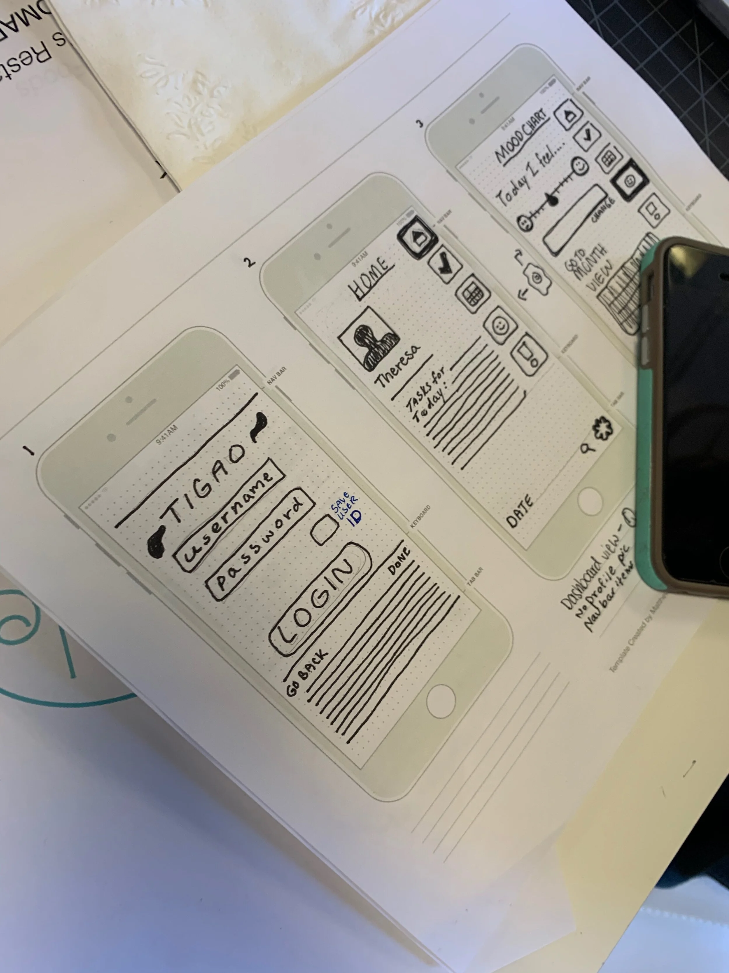 Student work on a mental health app called Tigao, 2019